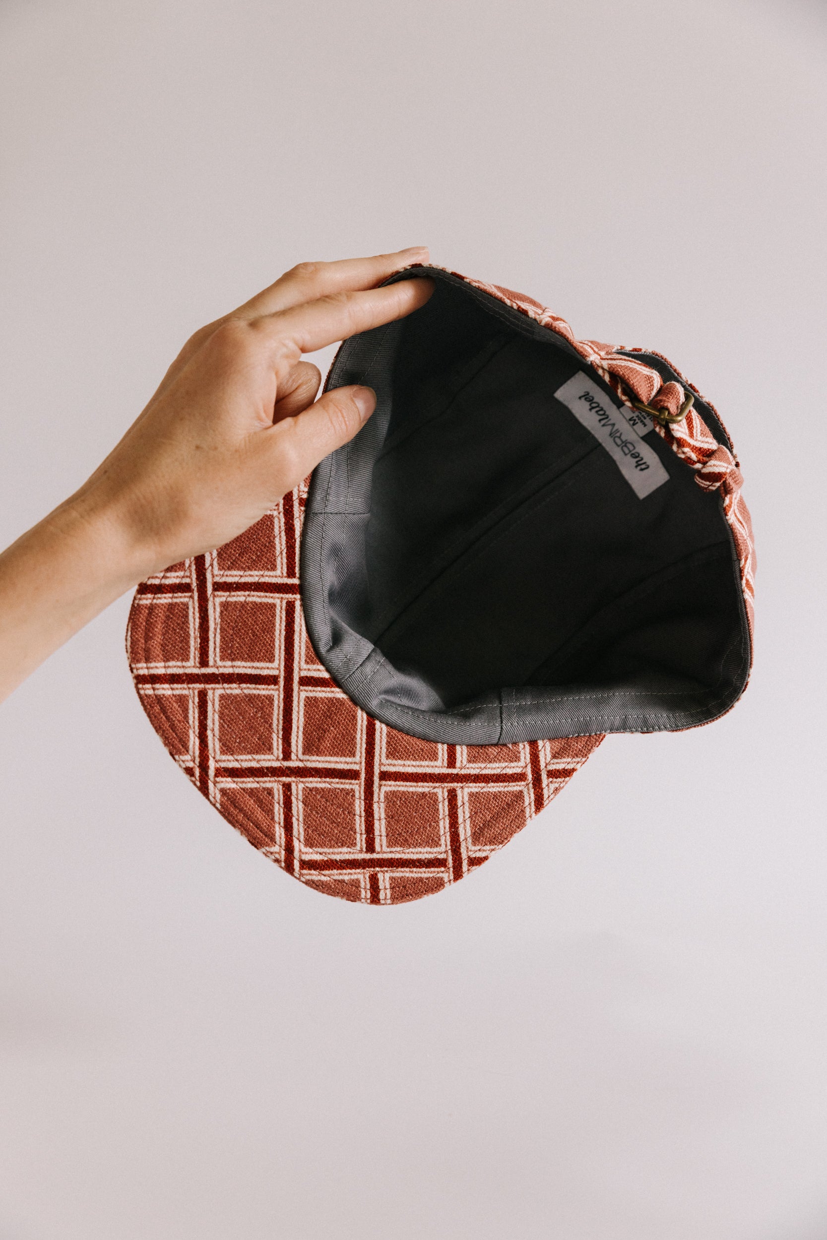 This cap is made from vintage material. Because of the exclusive nature of this vintage fabric, only a very limited amount of caps can ever be made in this particular print. Due to the print placement, each cap in this pattern will vary slightly from one to another, meaning each hat is completely unique and one of a kind.
