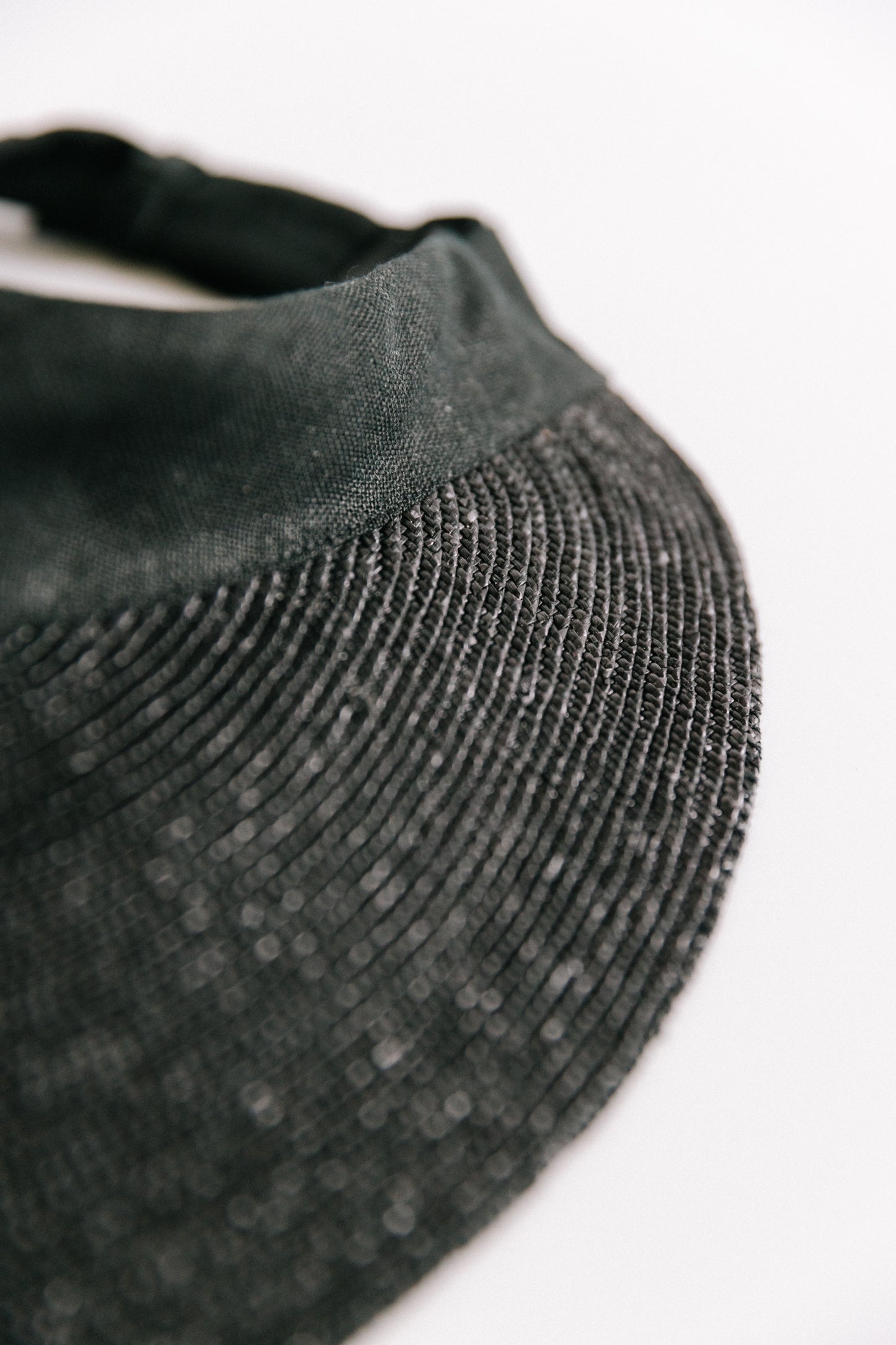 Narrow strips of straw are individually machine sewn together row by row in The Brim Label studio to create the intricate, lightweight straw brim of the Rosa and Eliza visors. Available in two lengths - Rosa has a peak measuring 6.5cm at its longest point. Eliza (pictured) has a longer peak measuring 10cm at its longest point.