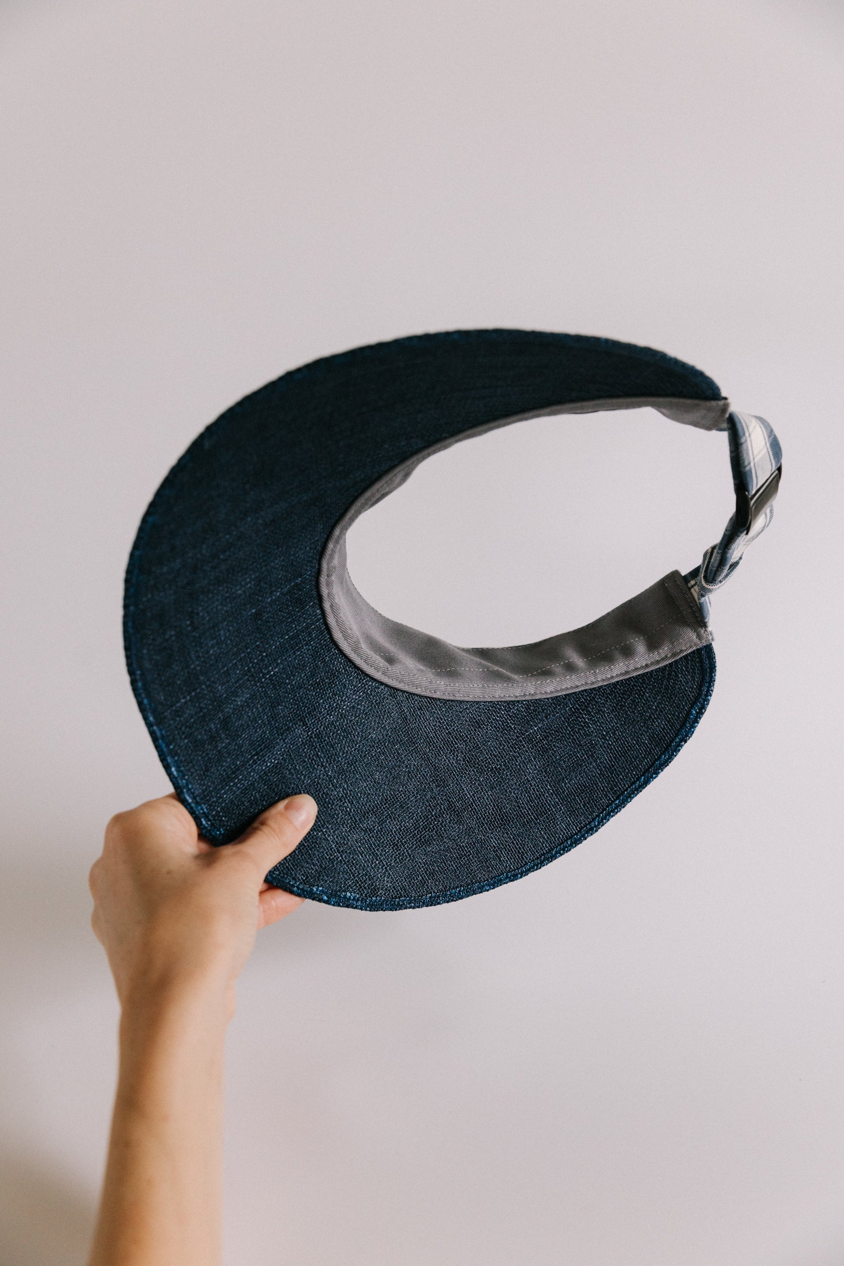 Narrow strips of straw are individually machine sewn together row by row in The Brim Label studio to create the intricate, lightweight straw brim of the Rosa and Eliza visors. Available in two lengths - Rosa has a peak measuring 6.5cm at its longest point. Eliza (pictured) has a longer peak measuring 10cm at its longest point.