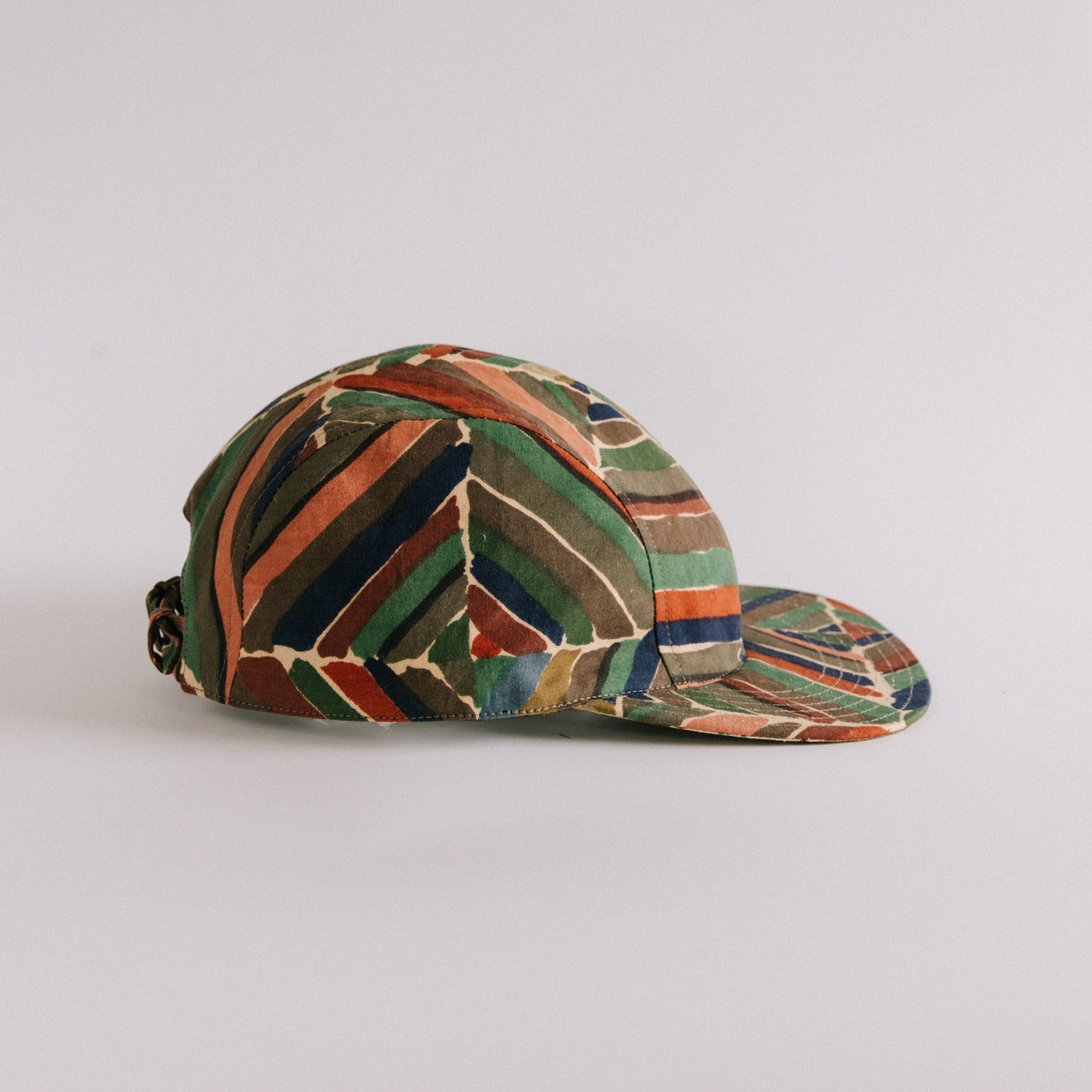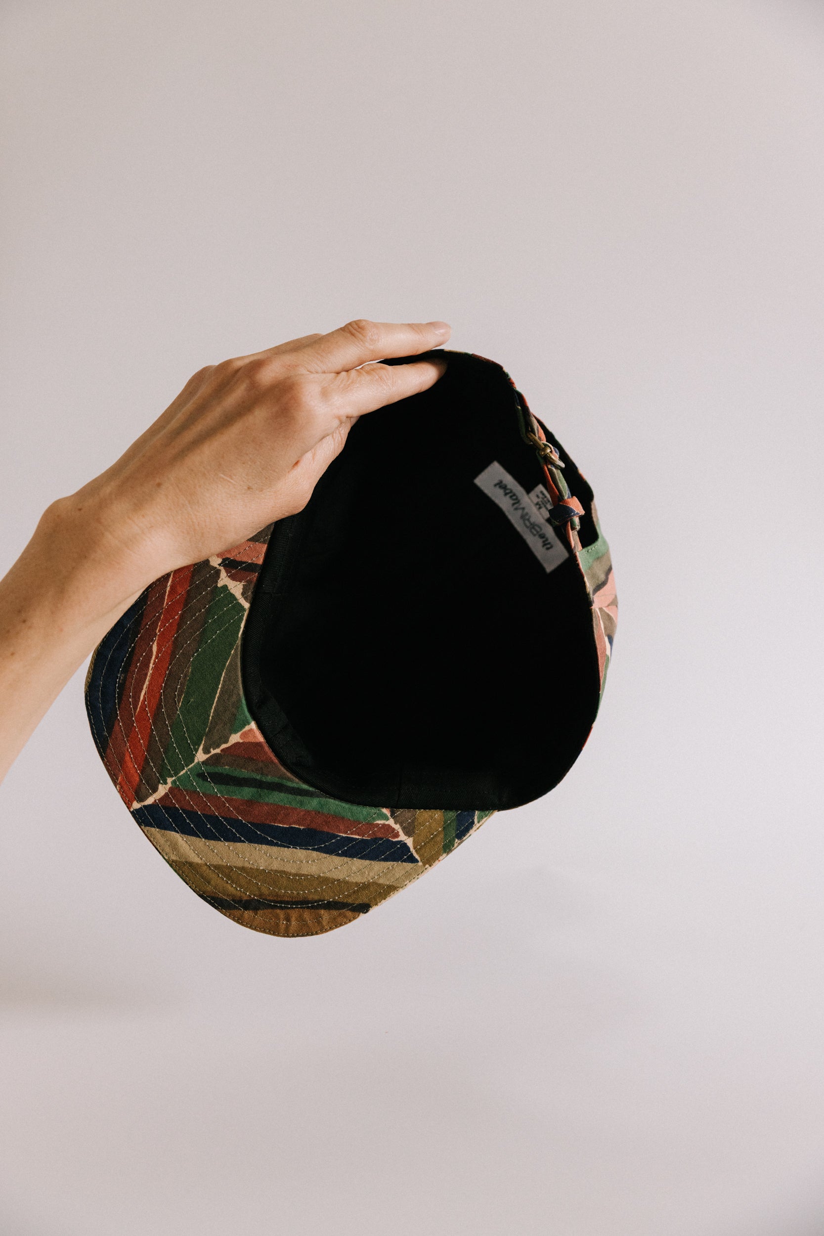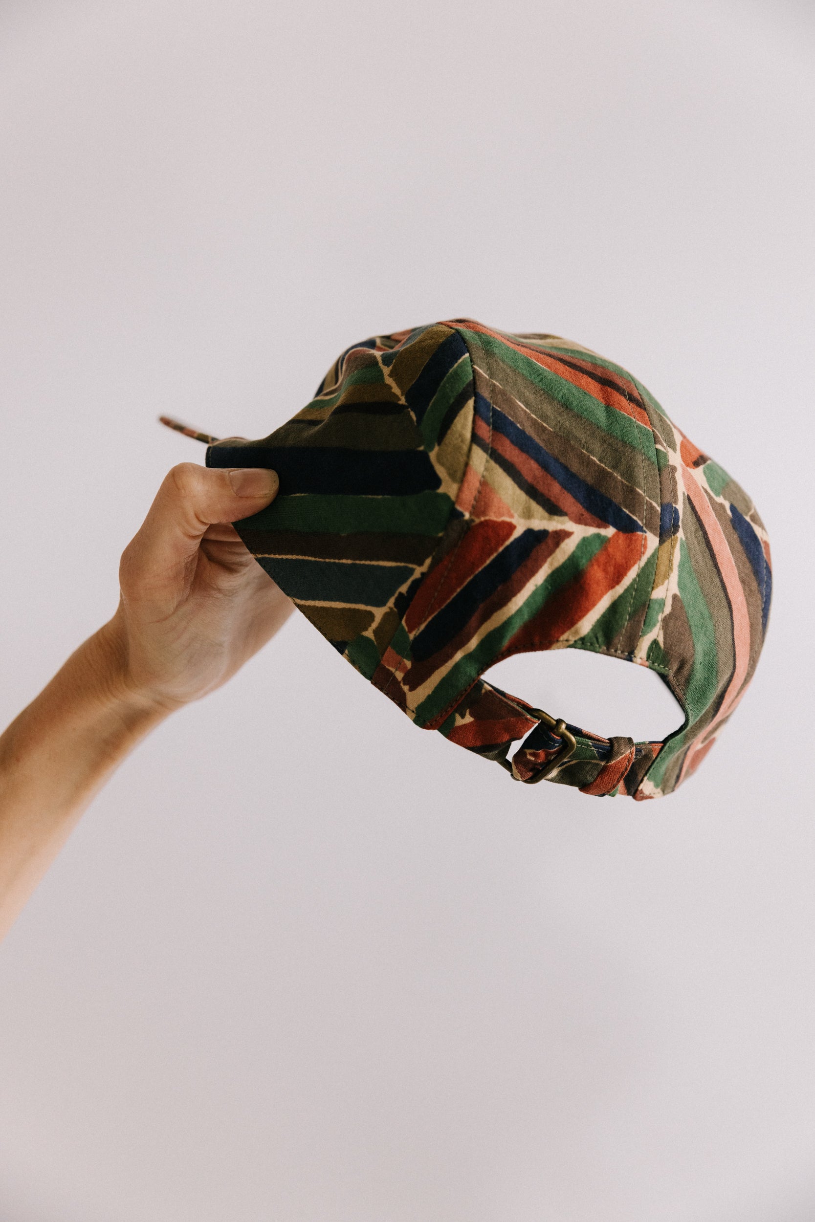 This cap is made from vintage material. Because of the exclusive nature of this vintage fabric, only a very limited amount of caps can ever be made in this particular print. Due to the print placement, each cap in this pattern will vary slightly from one to another, meaning each hat is completely unique and one of a kind.