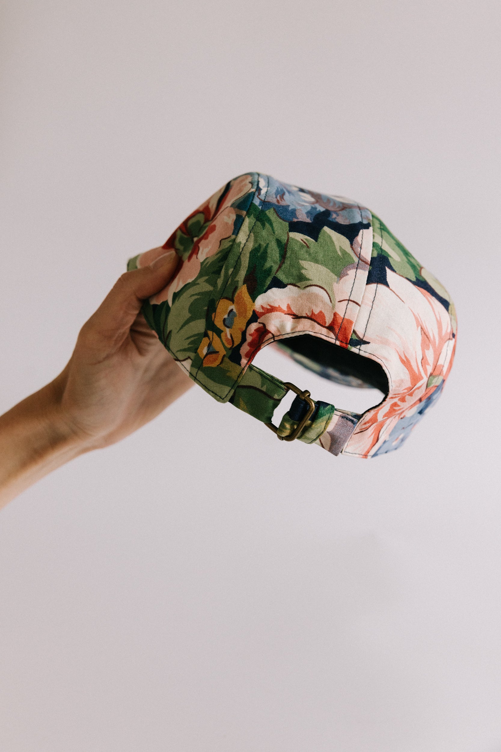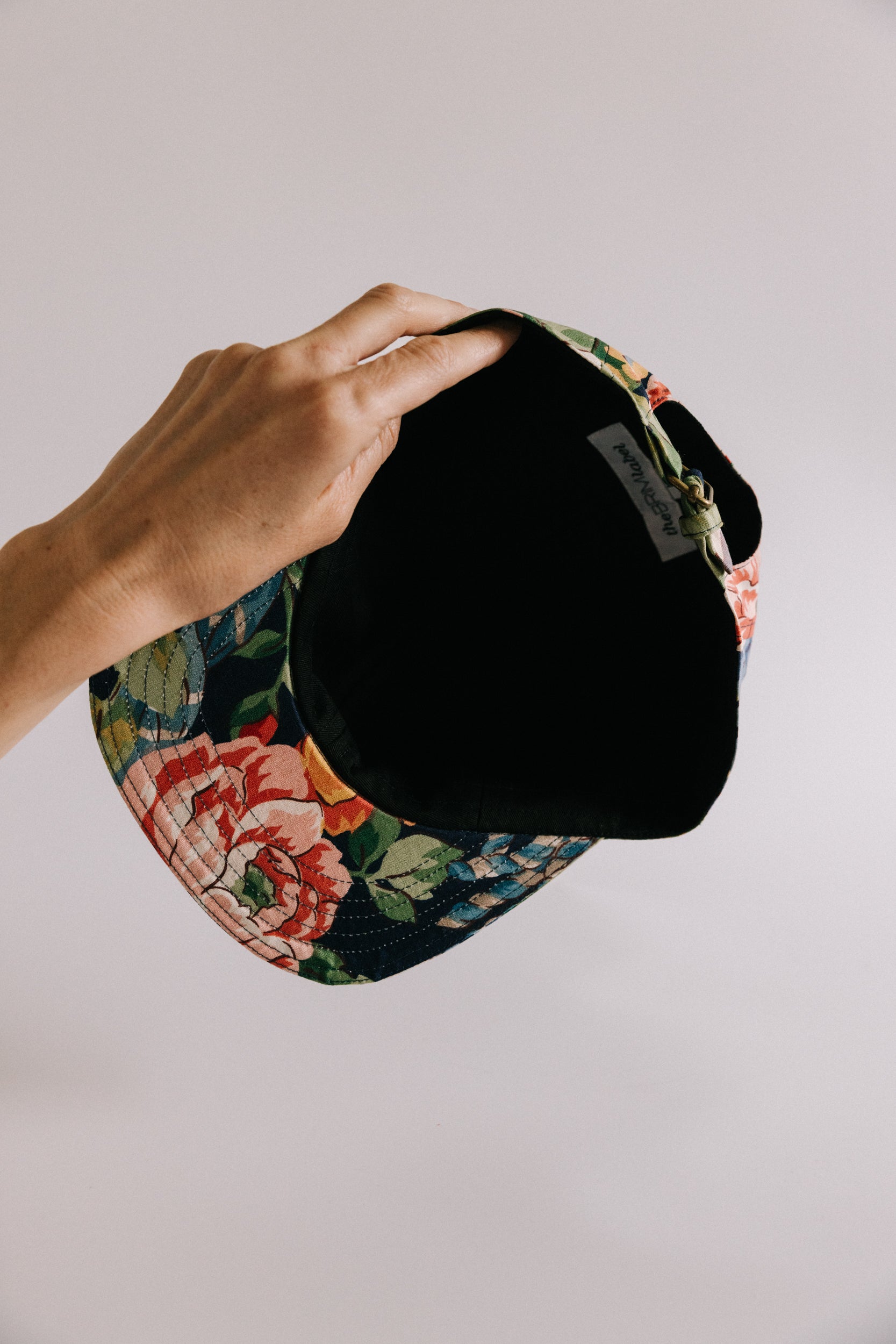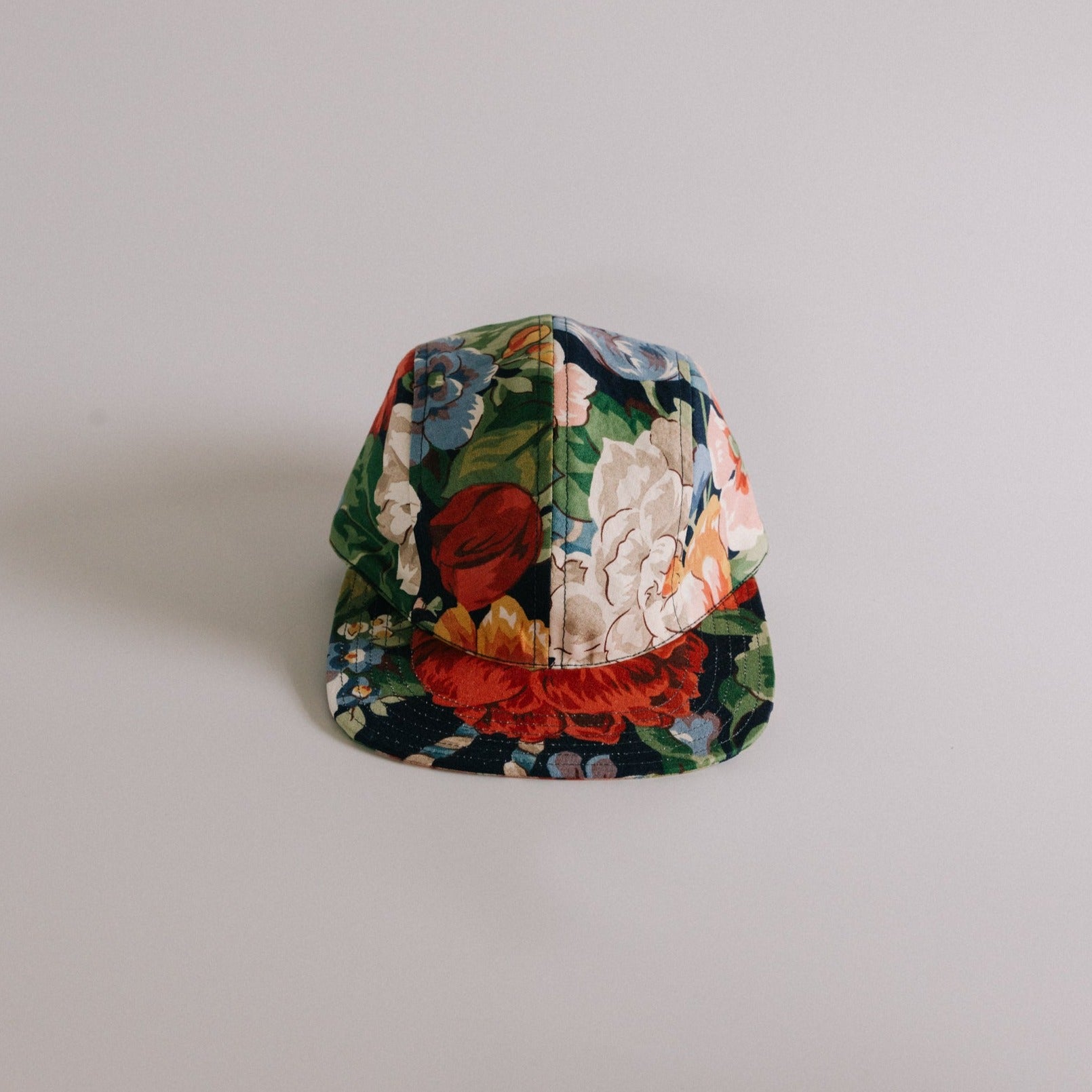 This cap is made from vintage material. Because of the exclusive nature of this vintage fabric, only a very limited amount of caps can ever be made in this particular print. Due to the print placement, each cap in this pattern will vary slightly from one to another, meaning each hat is completely unique and one of a kind.