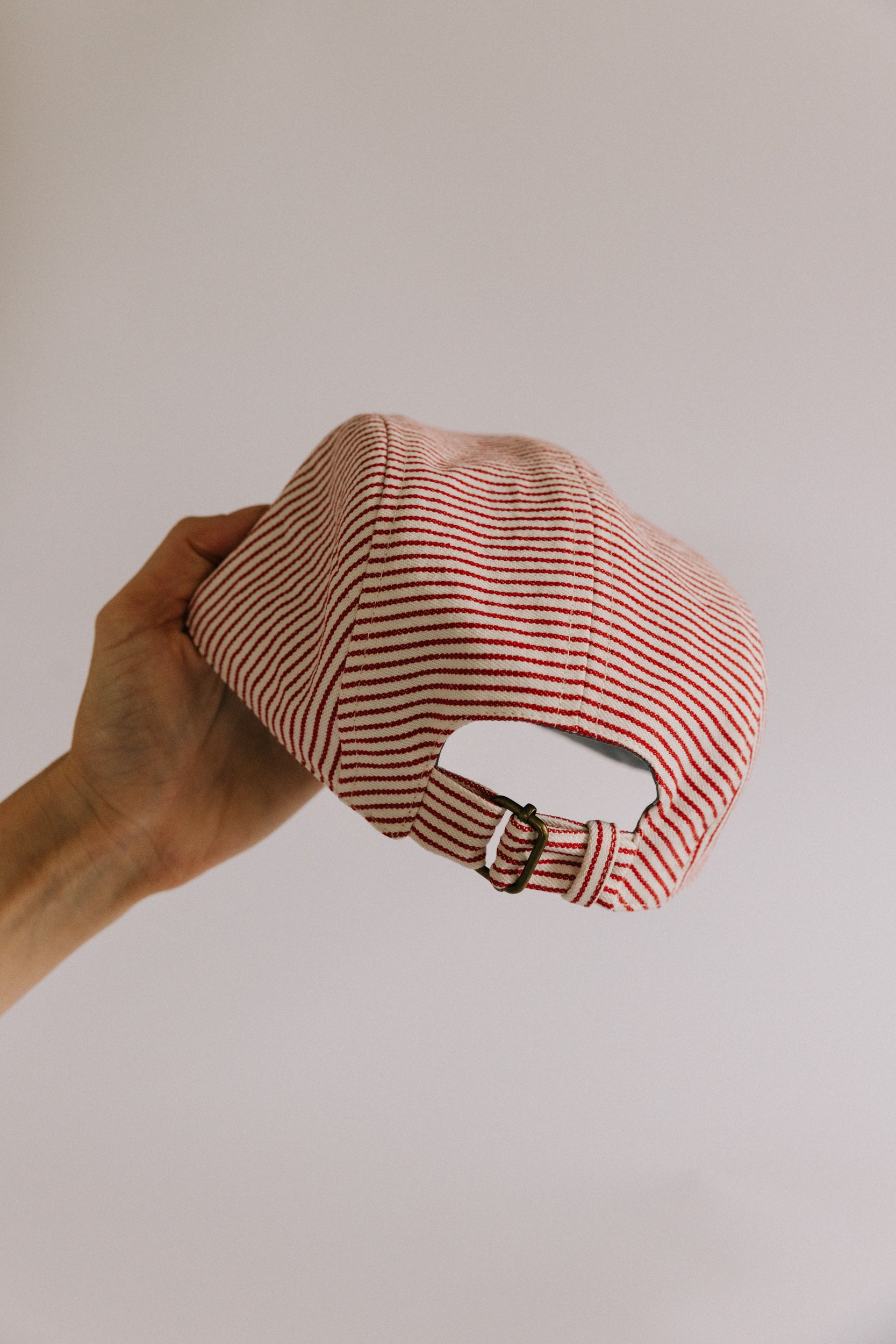 The Brim Label women's cap is available in two different peak options - Jamie (pictured) has a traditionally shaped cap peak and Thelma has a slightly wider peak, which creates a flattering curve shape around the face. Both the Jamie and Thelma peaks measure 6.5cm at their longest point.