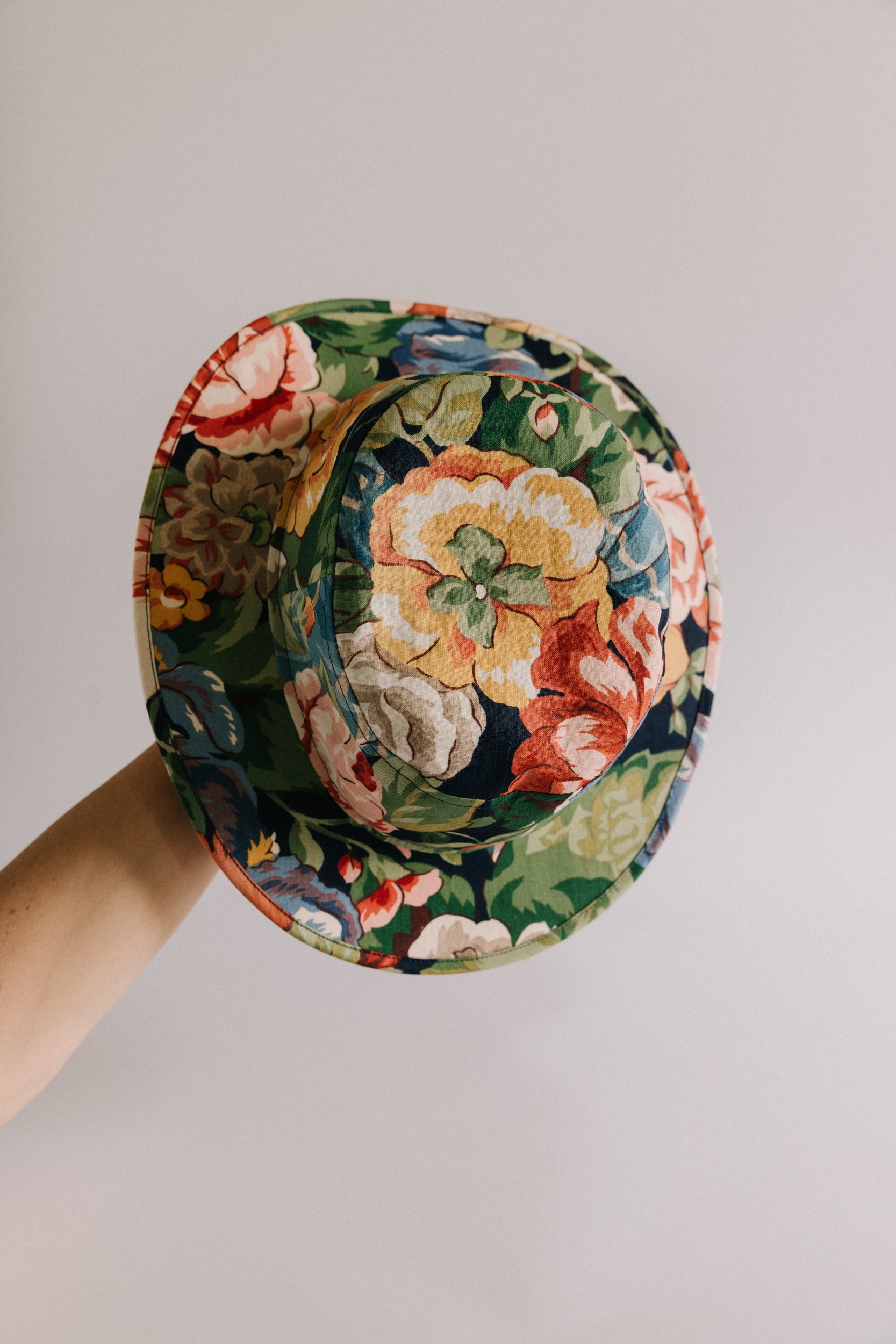 Because of the exclusive nature of this vintage material, only a very limited amount of hats can ever be made in this particular fabric. Due to the print placement, each hat in this pattern will vary slightly from one to another, meaning each hat is completely unique and one of a kind.