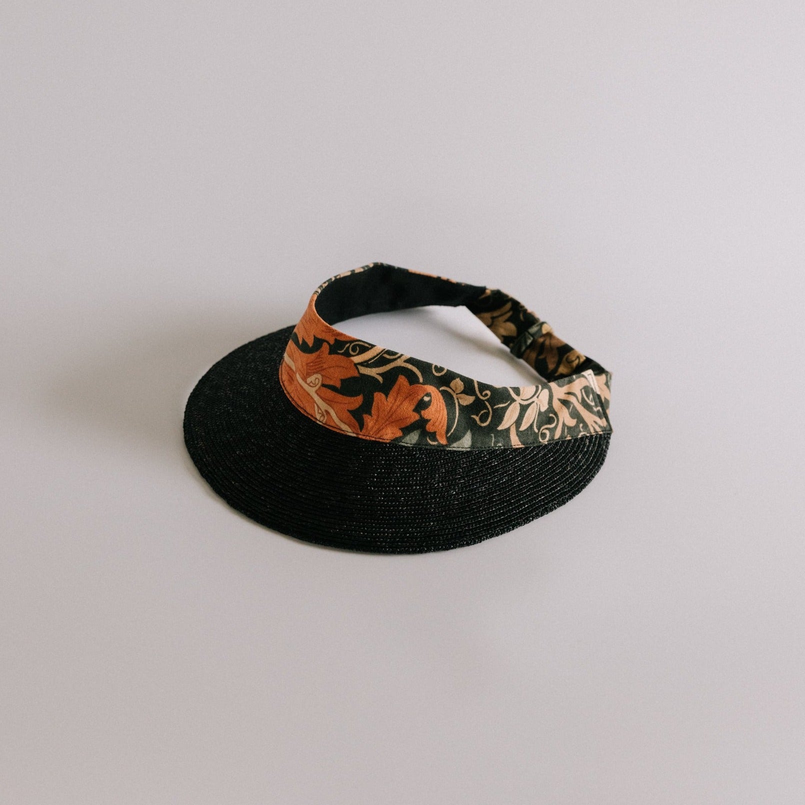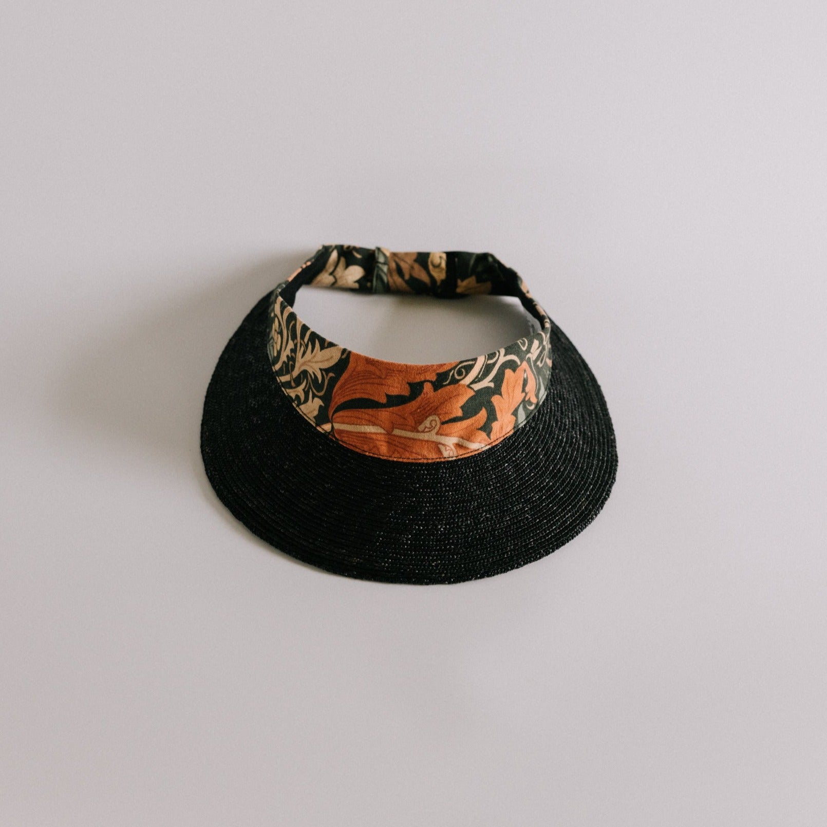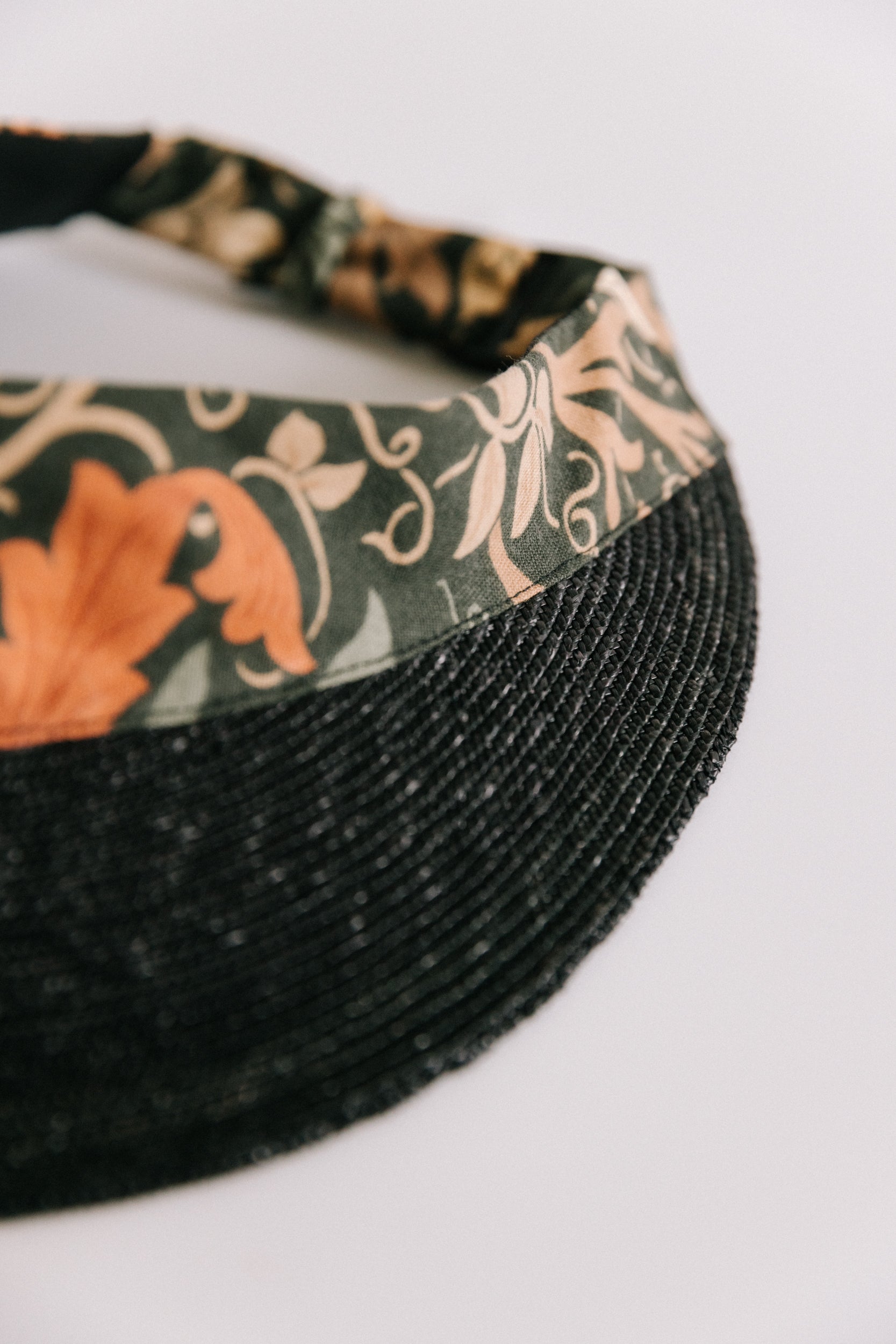 Narrow strips of straw are individually machine sewn together row by row in The Brim Label studio to create the intricate, lightweight straw brim of the Rosa and Eliza visors. Available in two lengths - Rosa (pictured) has a peak measuring 6.5cm at its longest point. Eliza has a longer peak measuring 10cm at its longest point.