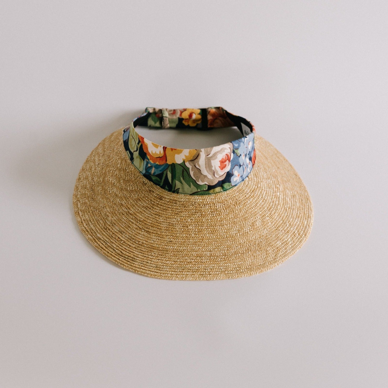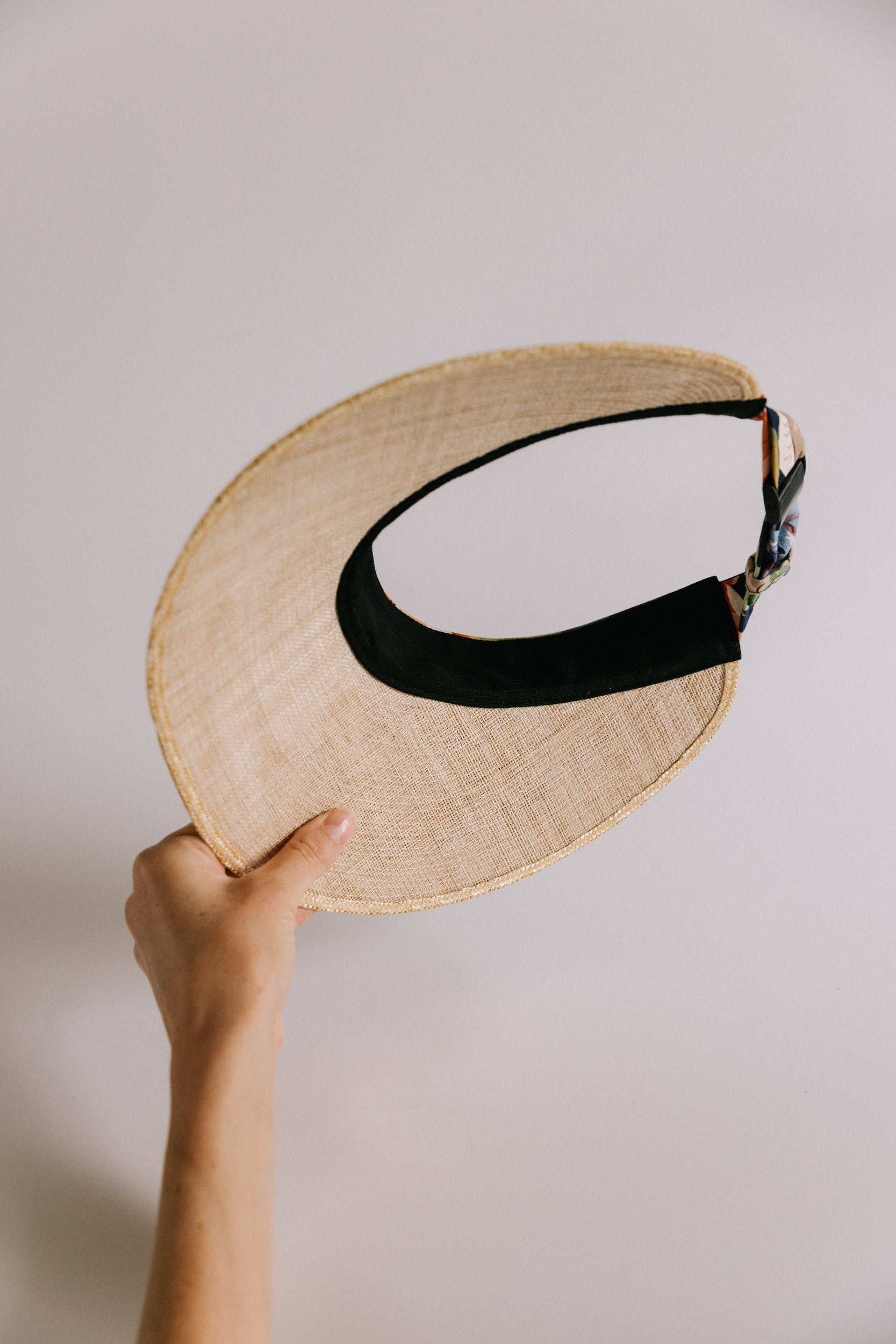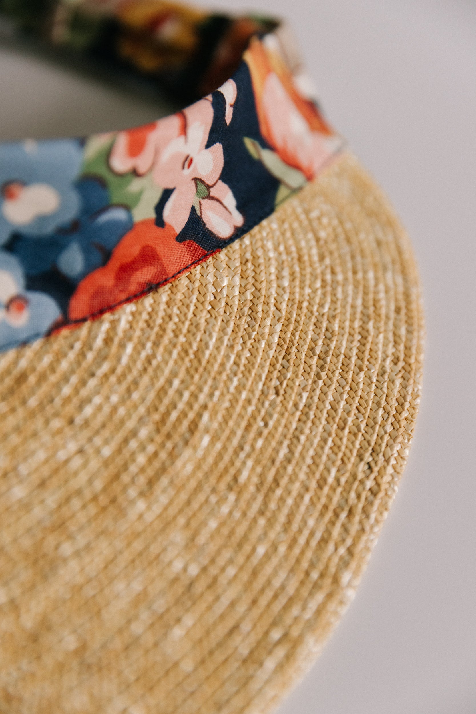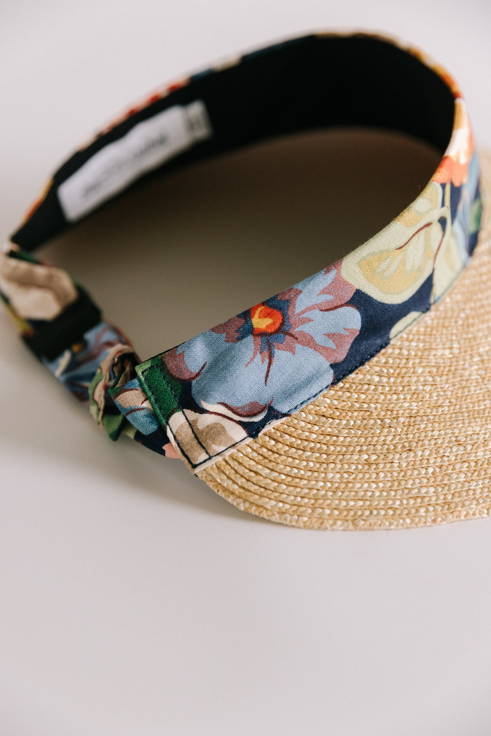 Narrow strips of straw are individually machine sewn together row by row in The Brim Label studio to create the intricate, lightweight straw brim of the Rosa and Eliza visors. Available in two lengths - Rosa has a peak measuring 6.5cm at its longest point. Eliza (pictured) has a longer peak measuring 10cm at its longest point.