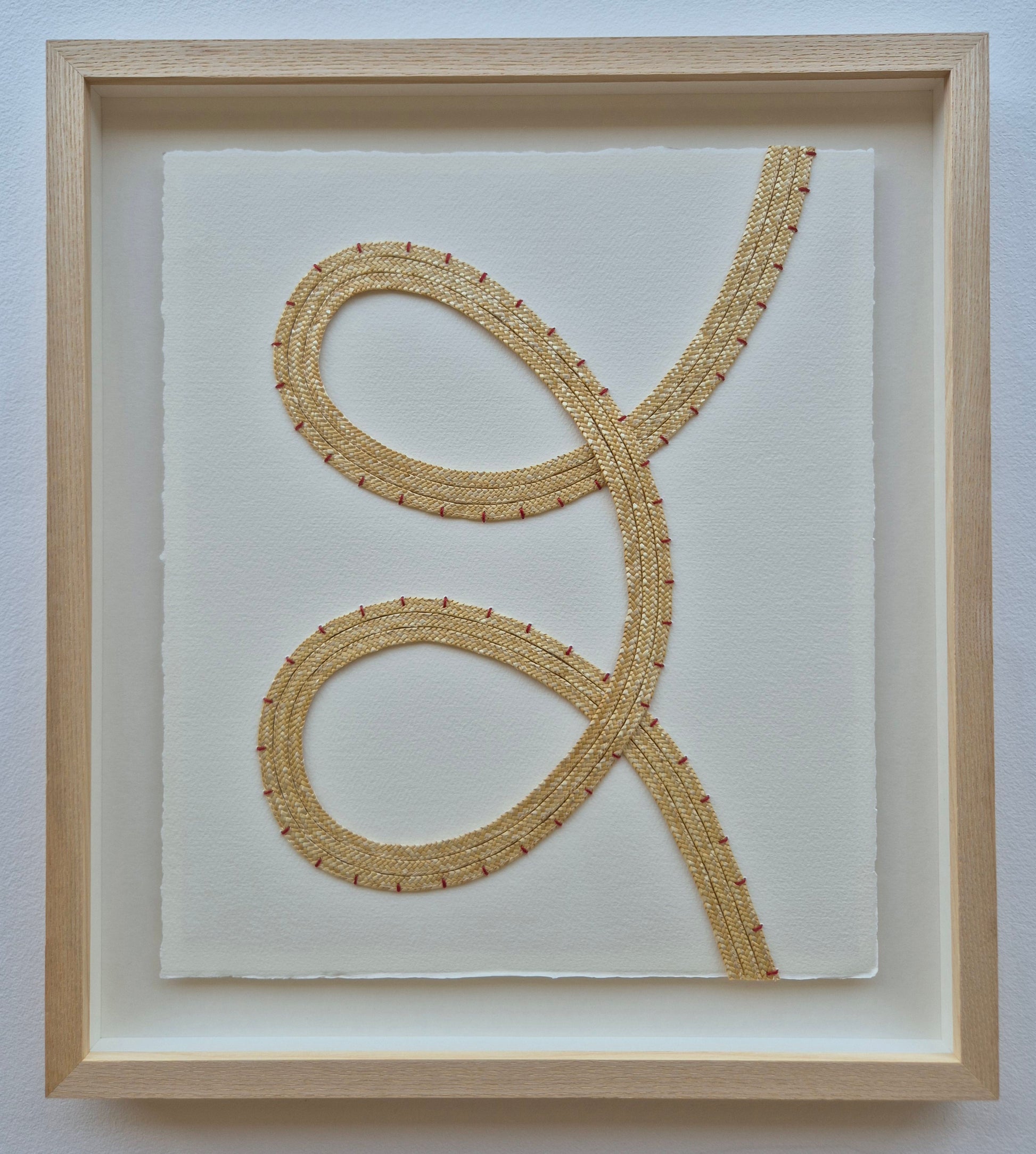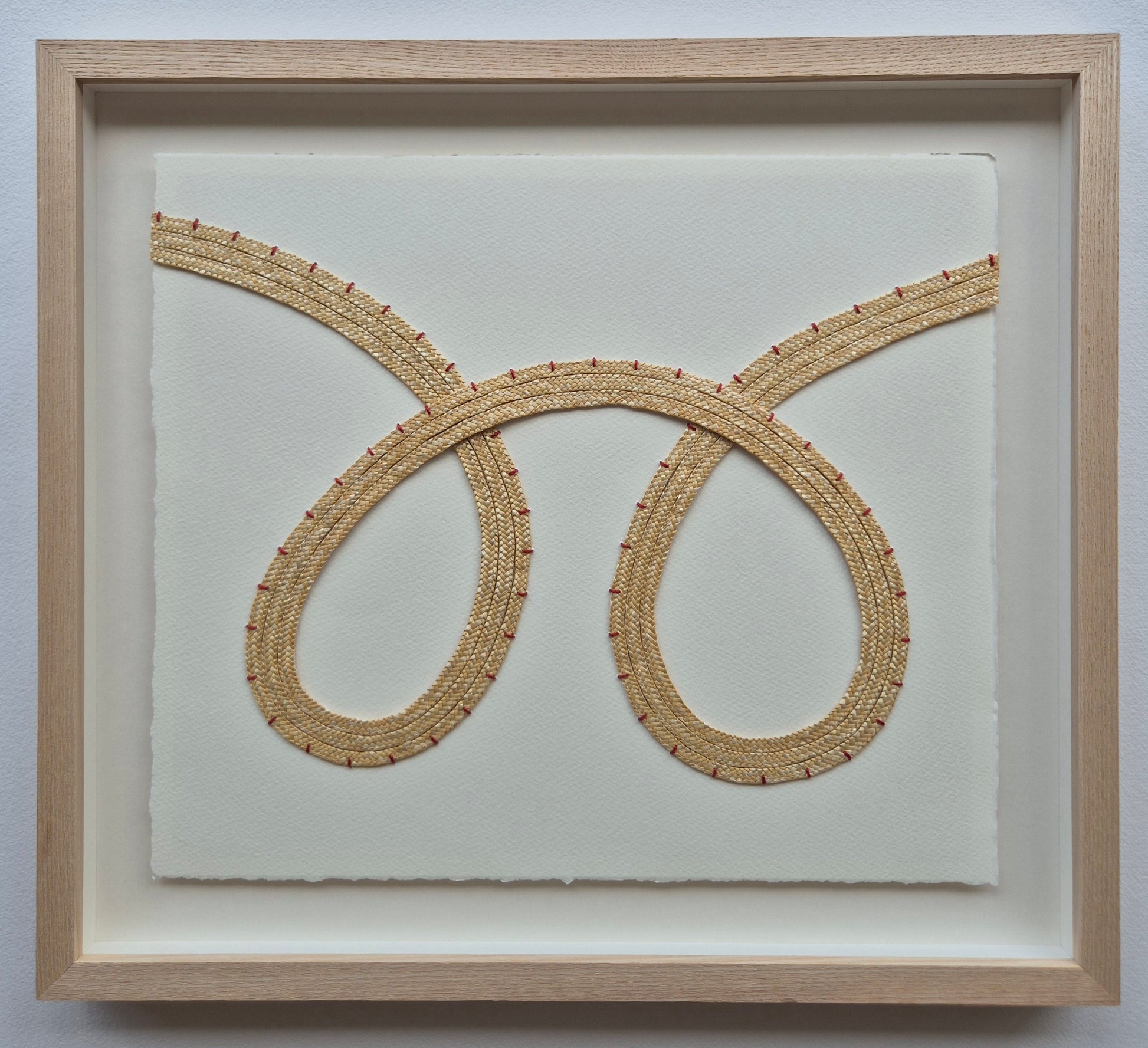 Individual strands of wheat straw braid have been sewn together, then hand stitched in place atop cotton paper. This piece is one of four original straw artworks in the 'See' series. It can be hung on the wall in the orientation of your choice - there are extra holes on the back of the frame to allow for this flexibility. How do you see it?