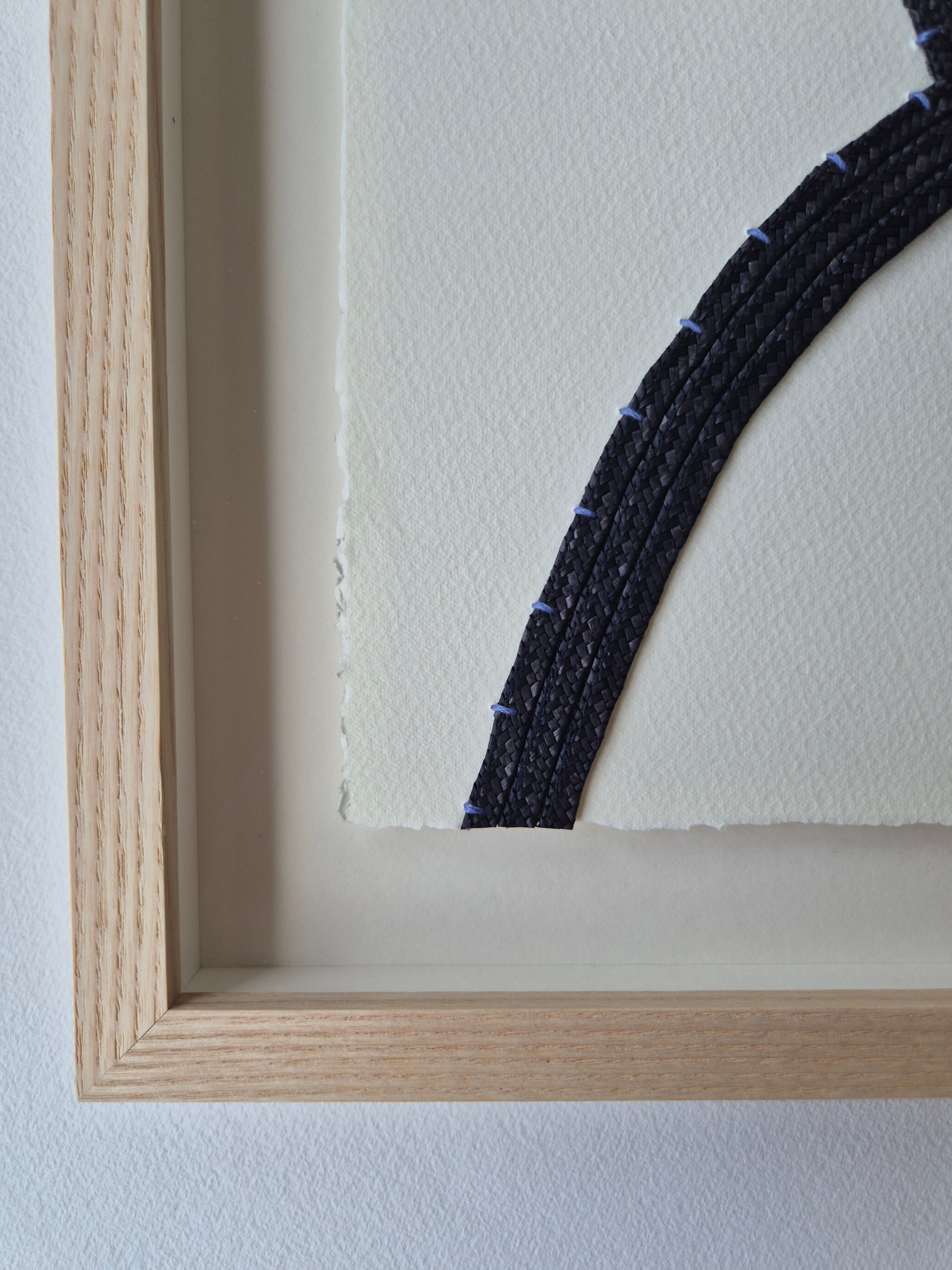 Individual strands of wheat straw braid have been sewn together, then hand stitched in place atop cotton paper. This piece is one of four original straw artworks in the 'See' series. It can be hung on the wall in the orientation of your choice - there are extra holes on the back of the frame to allow for this flexibility. How do you see it?