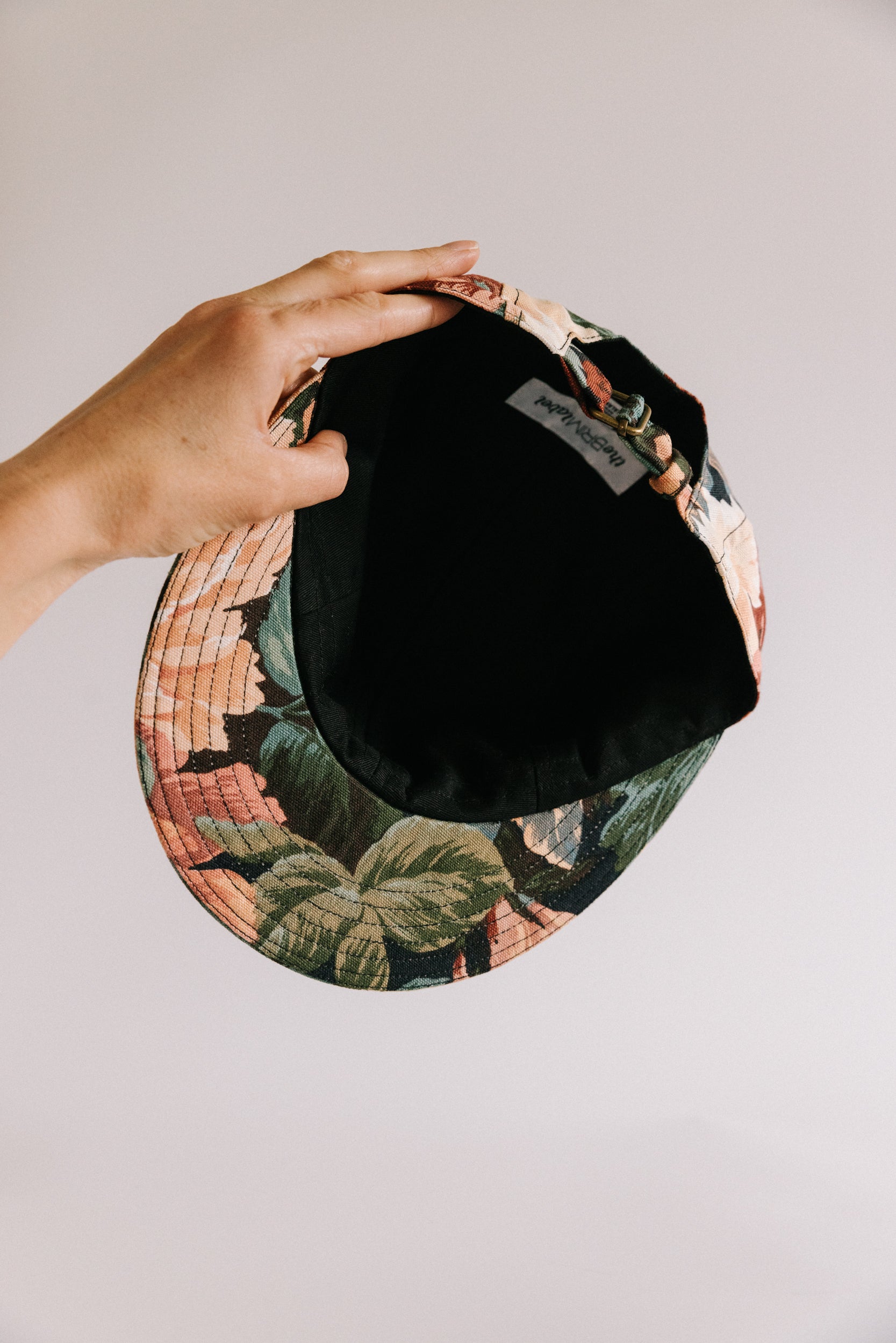This cap is made from vintage material. Because of the exclusive nature of this vintage fabric, only a very limited amount of caps can ever be made in this particular print. Due to the print placement, each cap in this pattern will vary slightly from one to another, meaning each hat is completely unique and one of a kind.